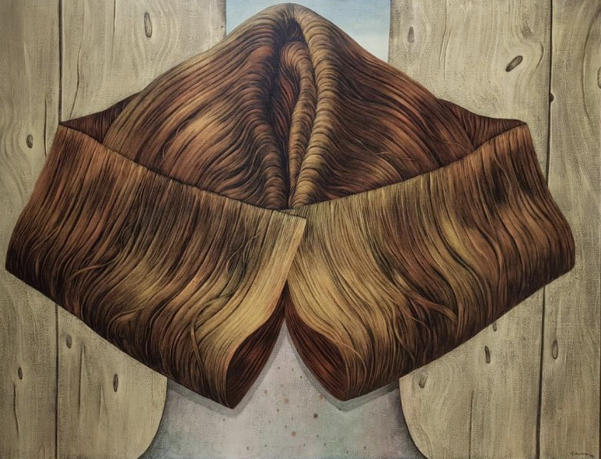 In the early 1960s, he developed an original style that was enthusiastically praised by critics René Déroudille and Jean-Jacques Lerrant. He focused on the details of his subjects, giving them a poetic and mysterious dimension. A painter of suggestion, Charles Giaume was drawn to the evocative power of fragments of the body or accessories, which he enlarged disproportionately. The motif, now ambiguous, is turned into derision and takes on a strong erotic charge suggested with refinement. To achieve this, he sometimes uses trompe-l'oeil, combining various materials such as lace and hair. Women and hair seem to be an obsession for him. His painting seems to pierce the secret of the subject and invites a new interpretation of it, drawing on the imagination.